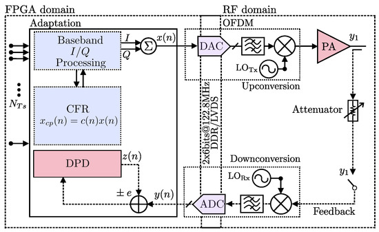 - Kumar, N.; Rawat, M.; Rawat, K. Software-Defined Radio Transceiver Design Using FPGA-Based System-on-Chip Embedded Platform with Adaptive Digital Predistortion. IEEE Access 2020, 8, 214882–214893. [Google Scholar] [CrossRef]