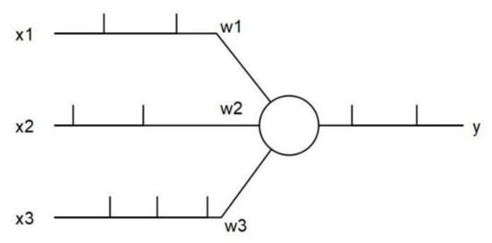 The SNN model depends on the asynchronously generated event stream. Figure 2 shows a simplified SNN neuron model where x1, x2 and x3 are inputs of the neuron; w1, w2 and w3 are weights; and y is the output of the neuron. The spikes are seen on the input and output. The action potentials are travelling on the input lines at different timestamps. The neuron accepts the inputs and generates an output in an asynchronous manner.