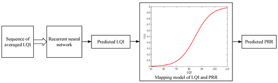 Based on the above analysis, this paper proposes a more effective link quality prediction method RNN-LQI, which adopts RNN to predict the LQI series, and then evaluates the link quality according to the fitting model of LQI and PRR, as shown in Figure 3. On the one hand, this method could better mine the inner relationship among LQI series with the help of the short-term memory capability of RNN, which helps to reduce the impacts of prediction errors. On the other hand, it could alleviate the impacts of link fluctuation on PRR mapping by taking advantage of the higher resolution of LQI in the transitional region, which helps to reduce the impacts of mapping errors. Therefore, RNN-LQI could suppress both error sources of prediction and mapping simultaneously, which results in more accurate link quality prediction.