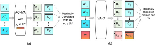 - Akhonda, M.A.B.S.; Levin-Schwartz, Y.; Bhinge, S.; Calhoun, V.D.; Adalı, T. Consecutive Independence and Correlation Transform for Multimodal Fusion: Application to EEG and fMRI Data. In Proceedings of the 2018 IEEE International Conference on Acoustics, Speech and Signal Processing (ICASSP), Calgary, AB, Canada, 15–20 April 2018; pp. 2311–2315. [Google Scholar]