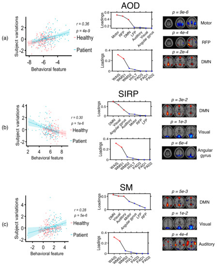- Sui, J.; Qi, S.; van Erp, T.G.; Bustillo, J.; Jiang, R.; Lin, D.; Turner, J.A.; Damaraju, E.; Mayer, A.R.; Cui, Y.; et al. Multimodal neuromarkers in schizophrenia via cognition-guided MRI fusion. Nat. Commun. 2018, 9, 3028. [Google Scholar] [CrossRef]