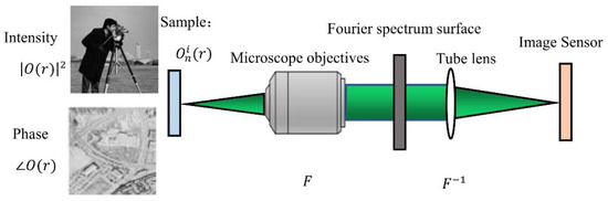 The obtained spectrum is filtered by pupil aperture low-pass filter, and the cutoff frequency is NA 2π/λ, where NA is the numerical aperture and λ is the optical wavelength. Through coordinate transformation, Equation (3) can be written as follows: