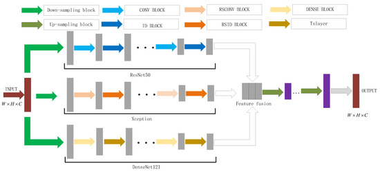 In this paper, the single feature extracted from three sub-network structures (ResNet50, Xception, DenseNet121) is trained for feature fusion. The feature fusion function retains the results of three feature maps, which makes the number of channels after fusion become the sum of the number of channels in the original feature map. The formula is: