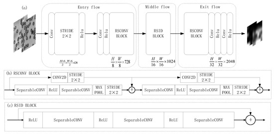 As Figure 4 shows the transfers learning Xception base-layer network model framework, where (a) represents the migration Xception base-layer network model, (b) represents the RSCONV BLOCK network structure module formed in the migration base-layer and (c) represents the RSID BLOCK network structure module formed in the migration base layer.