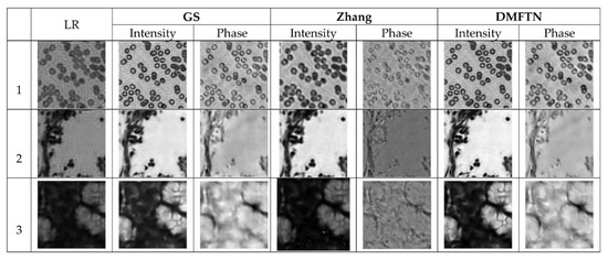 where denotes the serial number of the image, the . is a complex form, and its intensity and phase are input to the neural network as a channel, respectively. Using Equations (10) and (11), the number of channels of input data is greatly reduced, while the spatial size is increased to contain more effective high-frequency information.