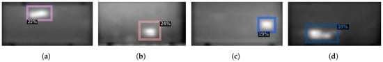 Four different hotspots (a–d) detected using our region-based CNN algorithm on the dataset acquired at Omuta, Japan.