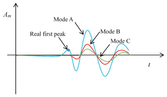 According to the test results, Figure 9 summarized the three modes of the received signals related to wave attenuation. Mode A is a normal one, in which the attenuation is not significant and the real first peak of the S-wave can be clearly distinguished. In mode B, wave attenuation makes the real first peak undistinguished, but the revised part of the first cycle can still be distinguished. Under this condition, the received signal is very similar to that given in Figure 1b and the revised signal is very easy to be mistaken as the P-wave distortion in near field effect or boundary reflection. In mode C, the first cycle is completely undistinguished, both peak-to-peak approach and arrival-to-arrival approach may underestimate the VS significantly. In any case, the wave attenuation may make the over-estimation of the S-wave travel time and under-estimation of the S-wave velocity. Therefore, it is very different from the P-wave distortion mentioned in the Introduction part in this paper, which will make the over-estimation of the S-wave travel time and under-estimation of the S-wave velocity.