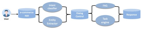 Chatbots have become more widely used in industries and smart cities with the rapid development of Artificial Intelligence. Chatbots are generally divided into either open-domain and closed-domain. In an open context, users can chat with chatbots on any topic such as entertainment, emotional companionship, and socialization, which is known as Chitchat bots. In a closed context, you can only talk about the topic set by the robot, which belongs to the closed-domain type of chatbots. In addition, closed-domain chatbots are designed to accomplish a certain task, such as customer support and shopping guidance, which is known as a task-oriented chatbot. For example, Ali Xiaomi [] is an Intelligent Personal Assistant in the field of e-commerce; based on Ali’s massive consumption and business data, combined with the needs of online and offline life scenarios, it provides intelligent shopping guides, services, and assistants with an anthropomorphic interactive business experience in a smart manual mode. An open-domain chatbot, such as Siri from Apple or Xiaobing [] from Microsoft, can provide a 24 h personal assistant for users.