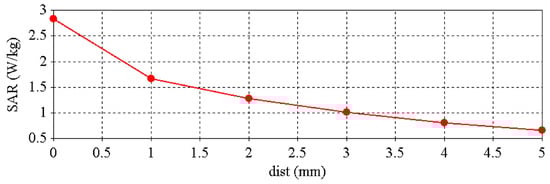 SAR at 2.4 GHz when varying the separation between the antenna and phantom.
