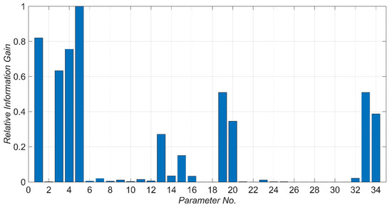 in which is the total number of time steps. The term R is the covariance matrix of the simulation error vector as defined earlier and is a maximum a posteriori (MAP) estimate, which is approximated with the initial estimates based on the recommendations provided in [28]. To calculate the sensitivity terms (i.e., ), a Finite Difference Method is employed. Then, the information gain of different model parameters is compared to sort out the model parameters with the highest information gain, which are relatively more likely to be identifiable unless they have strong dependence on other model parameters. The mutual entropy gain between and , , can be quantified through a mutual gain metric defined as