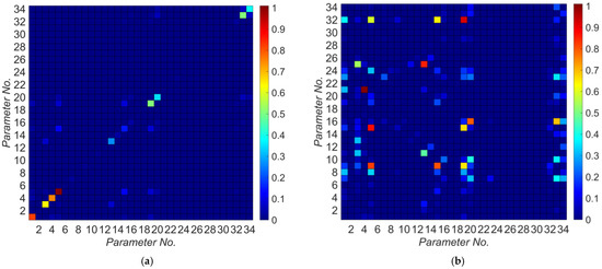 where is the a priori covariance matrix of and . In case of a strong dependency between two parameters, the model parameter with smaller information gain (based on Equation (8)) is fixed and the other model parameter will be estimated.