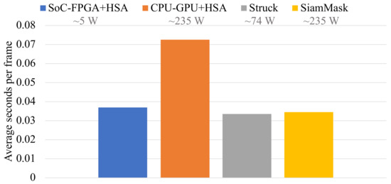 Table 1 shows some works in the state of the art that belong to this research niche. A subtle insight is that most authors focus on the particle swarm optimization (PSO) meta-heuristic or variants of this approach. Other works use an FPGA device to study feasibility of their proposals, but this research attempts to contrast SoC-FPGA and CPU-GPU heterogeneous systems to find which is the best option in this particular setting. Additionally, the comparison with other state-of-the-art video trackers in terms of their speed and power consumption is also performed in order to highlight the advantages of our proposal. Another distinction with respect to our research is that evaluation is commonly performed using toy data, whereas this work uses the Amsterdam Library of Ordinary Videos (ALOV) benchmark, which provides 314 video sequences with annotated initialization and ground truth data [37]. These video sequences are arranged in 14 categories that pose different challenges for video trackers. The number and diversity of video sequences makes this benchmark a good alternative for testing the performance of video tracker proposals. The work of Morsi et al. [16] is particularly interesting because the application is video tracking, but the work uses only FPGA. Another interesting work is that of Nogueira and Barboza [17] because it studies SoC-FPGA and CPU-GPU heterogeneous computing platforms; however, the application is not specific as it focuses on continuous optimization problems.