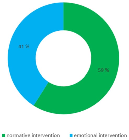 The authors were primarily interested in whether people find a more appropriate intervention based on norms or on an individual’s emotions. Various pro-environmental interventions have been identified, using different techniques, with each focusing on a different set of behavioural determinants [,,,]. Studies to date have shown that the social and personal norms are the ones that lead more to environmentally friendly behaviour than either an individual’s views, his or her concern about environmental degradation, or his or her environmental awareness [,]. Additionally, studies in the field of intervention analysis have shown that those interventions that include a normative component are more efficient than those that involve environmental concerns or financial incentives [,]. Interventions based on social and personal norms are efficient since people are most often motivated to act pro-socially []; however, what is the impact of interventions based on the emotional component? Previous research in the field of studying environmental behaviour has shown that positive emotions affect a higher willingness to make environmentally friendly donations []. Thus, in the present study, the authors were interested in whether positive emotions can also be effective in promoting environmentally friendly behaviour connected to appropriate waste management. Interventions were compared to identify which ones people perceive as more appropriate and would motivate them more in enacting environmentally friendly behaviour, i.e., those based on the normative component or those based on an emotional component. The result was the answer for how the proposed solution aims to tackle the challenges of waste management.