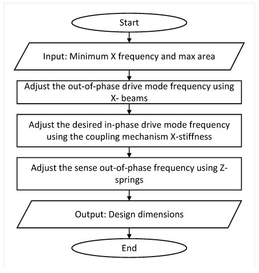 To achieve the correct mode ordering and separations of the in- and out-of-phase drive and sense modes we followed the design methodology presented by Figure 5.