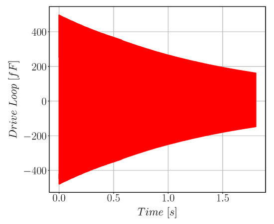 The duty cycle of the voltage and thus the force is generated through a modulator bit stream. This force bit stream can be modeled as a sinusoidal signal at frequency with amplitude value of in addition to a shaped noise that will be filtered by the moving MEMS that act as band-pass filter for the bit stream. Moreover, the value of will be determined by the density of bit stream which will be controlled by an Automatic Gain Control (AGC) block within the modulator. The force on each mass can be expressed then as follows: