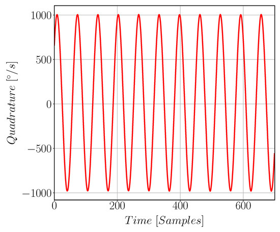 Quadrature signal in [°/s] which arises in the sense path of the gyroscope due to mechanical cross coupling between the drive and sense mode resulting from fabrication issues and the proof mass imbalance.