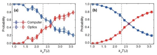 For the evaluation of this architecture, a classification of the different stages of an Ising model [] has been carried out, giving similar results compared to a ΝN created by a computer as these are represented in Figure 4 [,].