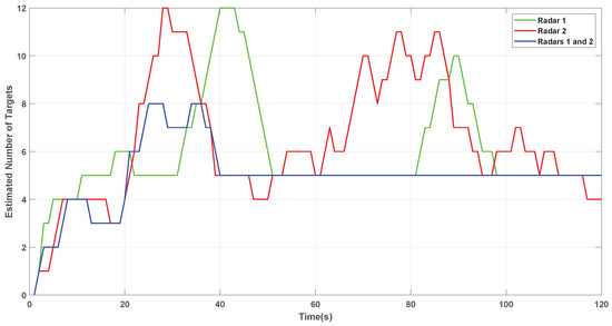 It is possible to observe that combining information from each tracker allows a faster convergence to the number of actual targets. In addition, it is more stable since the increase in data sources (sensors) in the system avoids targets occlusion compared to using only one radar.