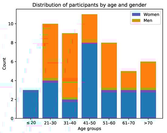 Histogram showing the distribution of participants among different age groups and genders (reproduced from [23]).