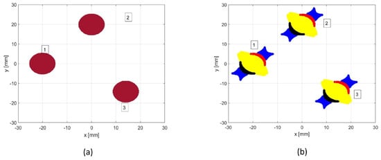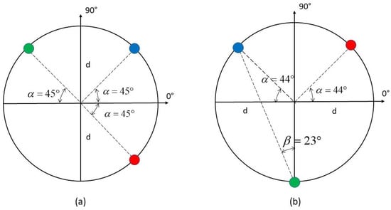The Designed Clusters (DC) of Disk sensors (a) and of DCSensors (b) (rotated by 45º compared to Figure 1b) for an optimal DoA estimation in [0–90]°.