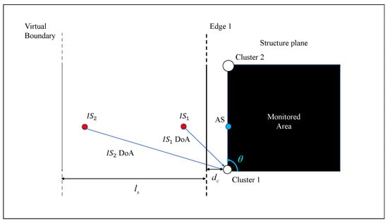In this paper, for testing the DoA estimation performance with the two clusters of Figure 1, we assumed equal white noise spectra and a flat signal spectrum within a Band , to emulate the narrow-band impulsive signals due to an impact. In this case, the Optimum Filter (14) is equal to an arbitrary constant within the Band , and 0 elsewhere: