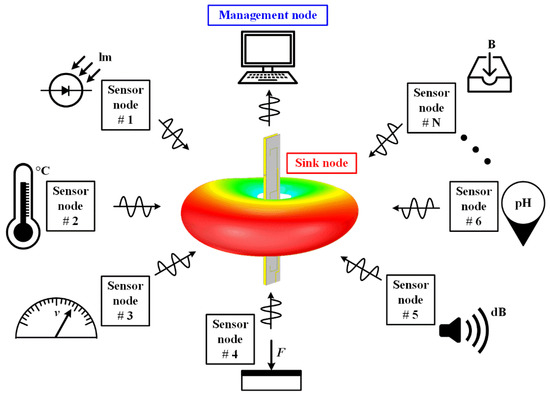 Application scenarios of the proposed high-gain omnidirectional dual-polarized (HGODP) antenna for sink nodes in wireless sensor networks (WSN).