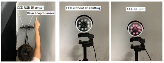 The popular CCD camera has been successfully used in surveillance applications. To have the capability of night vision (allowing the camera to see in the dark), the CCD camera is generally designed to have numerous infrared (IR) LEDs surrounding the image sensor. With the light emitted by infrared illuminators, such captured image from the CCD camera is well-known as CCD RGB-IR. Although CCD RGB-IR images have a relatively fine image-rendering property in an environment with low illumination (or completely dark), such images are somewhat substandard in the task of human activity recognition. For image recognition, including hand gesture recognition, in this work, the use of sensor fusion by additionally increasing and hybridizing another different image sensing modality of data will have positive effects on recognition accuracy improvements. Studies on IR image-based sensor fusion have been seen in the recent years. Most of these works are aimed at fusion of visible (VIS) and specific IR images [13,14,15,16,17,18,19]. In the study of Hu et al., a synchronized fusion model is proposed for multi-band images where images of far-infrared (FIR), near-infrared (NIR) and VIS are encompassed [13]. An adaptive fusion algorithm for VIS and IR videos is proposed in [14], which is based on entropy and the cumulative distribution of gray levels. In [15], a fusion network model, called a relativistic coupled generative adversarial network (RCGAN), is developed for the IR and VIS image fusion task. Another enhancement of the generative adversarial network on image fusion can also be seen in the work of [16], in which a dual-discriminator conditional generative adversarial network (DDcGAN) is designed to fuse IR and VIS images of different resolutions; in addition, fusion of VIS and IR images by a generative adversarial network is also employed in intelligent ubiquitous electric internet of things (UE-IoT), to detect fault points in a more reliable and accurate manner [17]. In [18], IR and VIS image fusion is used in image-based object tracking. To improve dissatisfactory object tracking in the situation that unreliable VIS images are captured in poor illumination conditions, a visible RGB and IR fusion tracking approach that is based on the fully convolution Siamese networks has been proposed by Zhang et al. [18]. In turn, Hou et al. proposes a framework called VIF-Net, and with VIF-Net, two different types of data from the VIS and IR sensors are used for the feature extraction, fused, and then the feature is reconstructed [19].