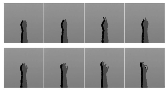 The sensor modality of “depth-grayscale” of the hand gesture intention action, Action 1.