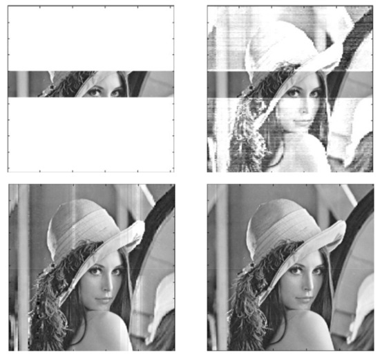 It is worth noting that, as mentioned in the Introduction, the reconstruction of Lena’ s photo was realized by using the structure presented in Figure 7 [1], as well. For example, one of the distorted images of Lena and the reconstruction is shown in Figure 9.