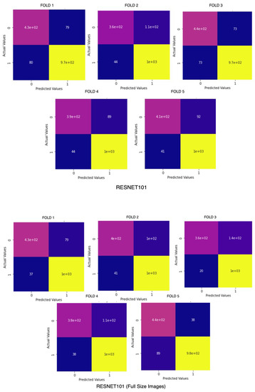 ResNet101 on BreaKHis on cropped (above) and original sized images (below).