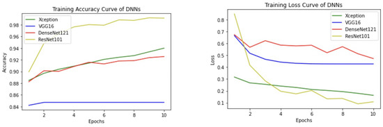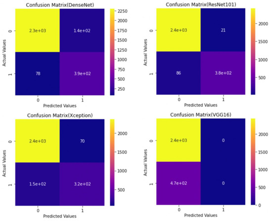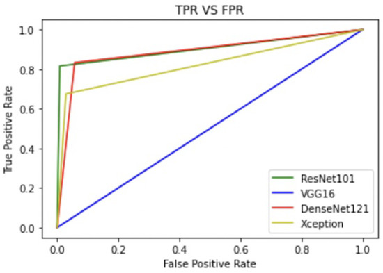 To analyze the performance of different models and get the best results out of them, three parameters were considered for evaluation—accuracy, sensitivity, and specificity. All the CNN models have been trained for about 15 epochs with the Adam optimizer. The time taken for model training on Google Colab is about 170 seconds/epoch for VGG16. In Xception it was taking about 154 s/epoch and for DenseNet Model it took about 157 s/epoch. Finally for ResNet Model, it was taking 214 s/epoch.
