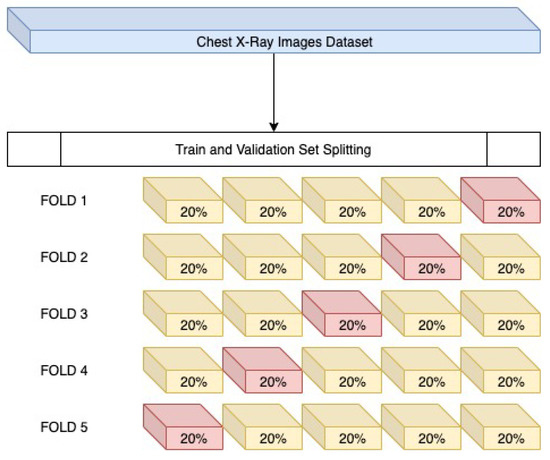 To verify that the models do not get overfitted or underfitted and perform well, K-fold cross-validation has been done and was used to analyze the varying characteristics of the data. Since the data is imbalanced, performing K-fold (K = 5) validation, as shown in Figure 14, is an necessary step. It is a modification of the conventional validation and returns different fold results. The dataset is divided into five partitions and then at a given point of time one partition was used for testing the model and the rest of the parts were used for training purposes.