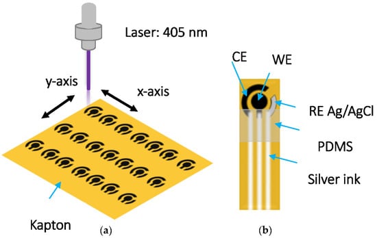 However, the fabrication process of patterned carbon has several disadvantages, such as poor repeatability and the lack of control of the induced carbon film thickness. To overcome these limitations, the functionalization of laser-induced graphene electrodes surface has been proposed [].