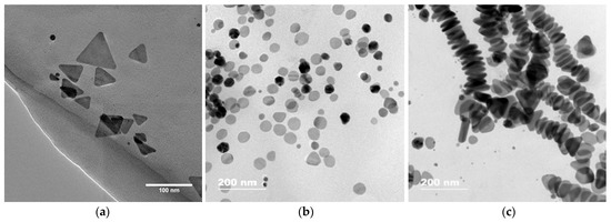 Transmission electron microscopy (TEM) images of AgTNPs were recorded with a Libra 200 microscope (Carl Zeiss, Jena, Germany) with a thermal field-emission cathode at the accelerating voltage of 200 kV. Samples of studied nanoparticles were deposited onto a copper grid support with a formvar film covered by amorphous carbon Formvar®/Carbon Reinforced Copper Grids 3440C-MB (SPI, West Chester, PA, USA).