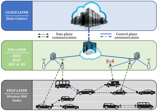 The computation of complex data, which are beyond the capability of edge and fog layer and are not time-sensitive, can be sent to the cloud layer for further advanced analysis that takes a long time and requires abundant storage. They are also used as a repository for control policies, software updates, and so on. The integration of SDN in VANETs handles the issues of such large-scale, heterogeneous, and dynamic networks by providing a robust mechanism for data traffic control and resource management of all the components of this novel architecture of VANETs. The implementation of cloud-fog-edge and SDN in VANETs will enhance VANETs services and will pave the way for future applications.