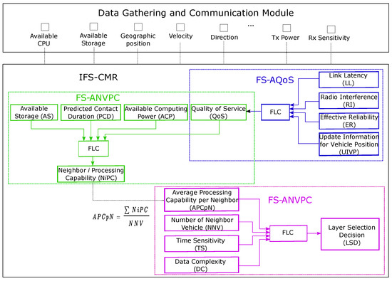 - IFS-CMR is composed of three subsystems, namely Fuzzy-based System for Assessment of QoS (FS-AQoS), Fuzzy-based System for Assessment of Neighbor Vehicle Processing Capability (FS-ANVPC), and Fuzzy-based System for Cloud-Fog-Edge Layer Selection (FS-CFELS), each having a key role in the proposed approach.