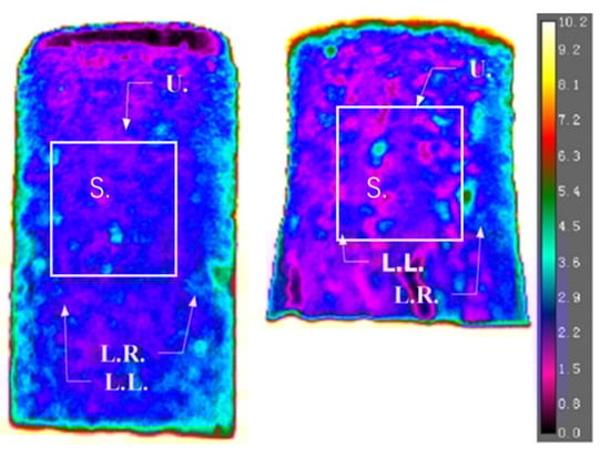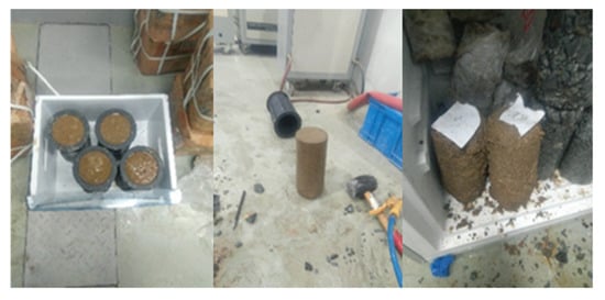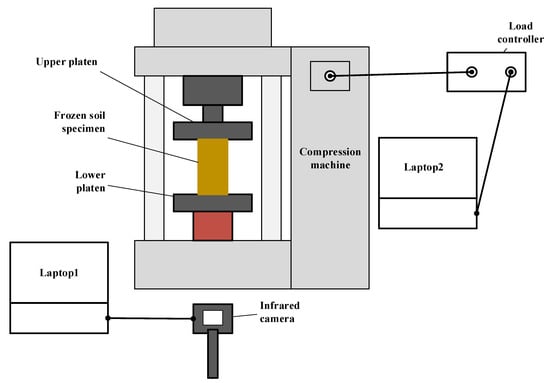 21], the low temperature of specimens during testing was maintained by immersing the specimens in liquid cool materials. Unfortunately, such cooling systems were not available to the authors and restricted the direct observation of specimens using the infrared thermographic camera during compression tests. Therefore, specimens were not guaranteed to be completely frozen during our tests. One sample of each soil type was analyzed as they demonstrated evident cracking behavior.