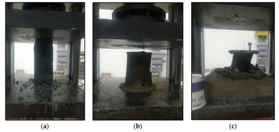 Figure 4c). Cracking occurred on either one or both sides of the specimen by chance, which cannot be practically controlled. Yielding and disintegrating of specimens occurred as the specimens were partially melted. The authors indeed attempted to repeat the tests under a lower room temperature (around 15 °C) in the winter, however, satisfactory improvements on avoiding the melting of specimens were not achieved. To avoid the melting of specimens, the compression tests on specimens should be conducted under temperatures below the freezing point of water [