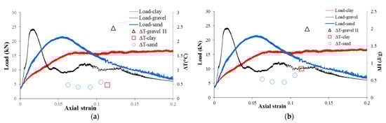 Figure 19. Before the maximum load points of the specimens, the gravel specimen experienced the most frictional heat