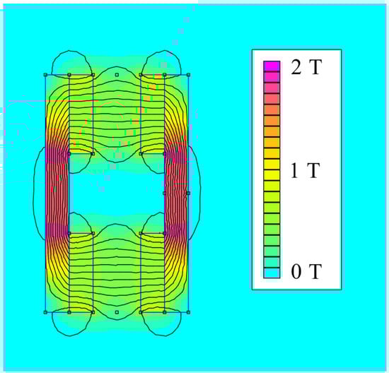 Planar FEMM model of magnetic circuit; analysis of magnetic flux density B.