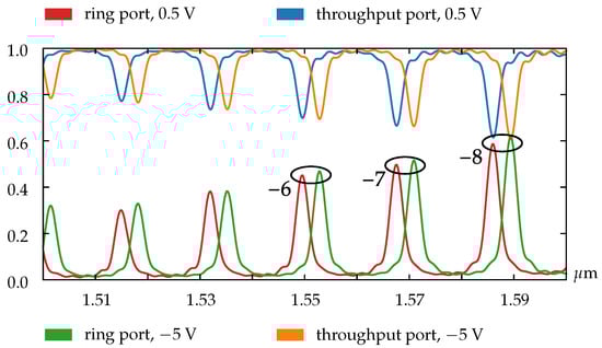 - Bogaerts, W.; De Heyn, P.; Van Vaerenbergh, T.; De Vos, K.; Kumar Selvaraja, S.; Claes, T.; Dumon, P.; Bienstman, P.; Van Thourhout, D.; Baets, R. Silicon microring resonators. Laser Photonics Rev. 2012, 6, 47–73. [Google Scholar] [CrossRef]