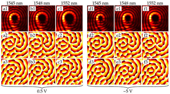 - Khonina, S.N.; Podlipnov, V.V.; Karpeev, S.V.; Ustinov, A.V.; Volotovsky, S.G.; Ganchevskaya, S.V. Spectral control of the orbital angular momentum of a laser beam based on 3D properties of spiral phase plates fabricated for an infrared wavelength. Opt. Express 2020, 28, 18407. [Google Scholar] [CrossRef] [PubMed]