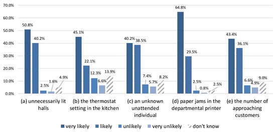 Persuasive technology is about interactive computing systems designed to change people’s attitudes and behaviors [37,38]. Consider ICC sensing requests such as “Have you taken a break from the sedentary position within the last hour?” or “How many months ago did you change the password to your work PC?”. These are used to collect useful occurrence data on health-related working habits and on following security procedures. But apart from being a means to collect data, such requests also have a persuasive component. Employees who receive them are implicitly reminded that it is desirable (or required) to take a break from the sedentary position or change one’s password. The reminding happens even if a request is disregarded or dismissed. Reminders are among the top motivational strategies applied in persuasive technology [38,39]. Apart from being an implicit reminder, a sensing request implements a self-report strategy [39], where a user provides feedback to the system. In summary, a subset of ICC consisting of persuasive sensing requests (like those above) may be treated as a workplace persuasive technology aiming to implement a company’s procedures and policies. Such requests may lead to self-incrimination, so one should prioritize making the responses anonymous.