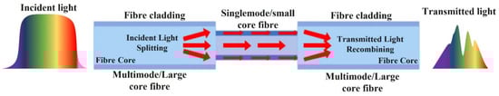 Schematic diagram of a multimode–singlemode–multimode optical fibre sensor [70].