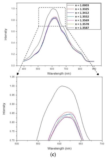 - MITSUSHIO, M.; HIGO, M. A Gold-Deposited Surface Plasmon Resonance-Based Optical Fiber Sensor System Using Various Light-Emitting Diodes. Anal. Sci. 2011, 27, 247. [Google Scholar] [CrossRef]