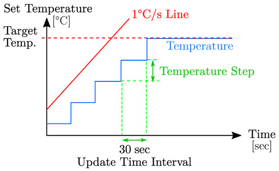Routine during a temperature increase. The set temperature was adjusted after an update time interval of 30 sec. The routine was applied until the target temperature was reached.