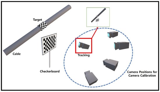 The configuration for the camera calibration process proposed in this study is shown in Figure 3. The camera projection matrix can be estimated by using multiple images taken from the Checkerboard at various locations and orientations. This study adopted the camera calibration method introduced by Zhang et al. [23].