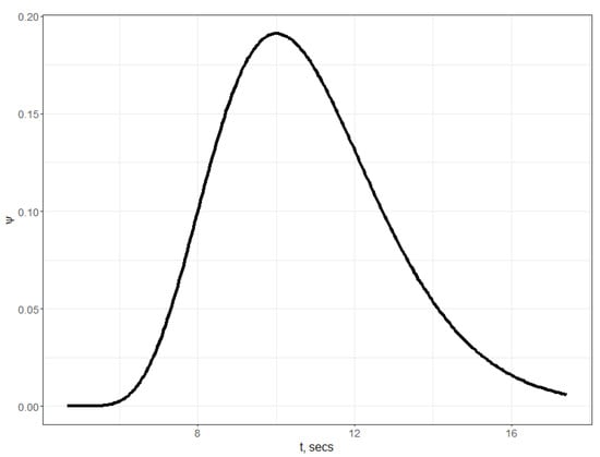 The idea is to use the model (11) and (12) for estimating the time series of the product with the respect to the enzyme–substrate reaction. In turn, these values correspond to the initial conditions of , , and , which are known from experimental data in advance. Estimation should include the rate constant and the gamma distribution parameters within f function in the system given by (11).