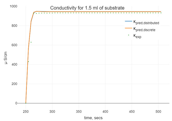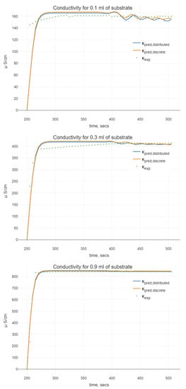 When analyzing the conductivity characteristics of the considered solution, we may conclude that it is a strong electrolyte. It follows from the pH value of BSA (4.5–4.8) [21] that was primarily added when obtaining the CLEA. Hence, we can use Kohlrausch’s law for a solution of a strong electrolyte: