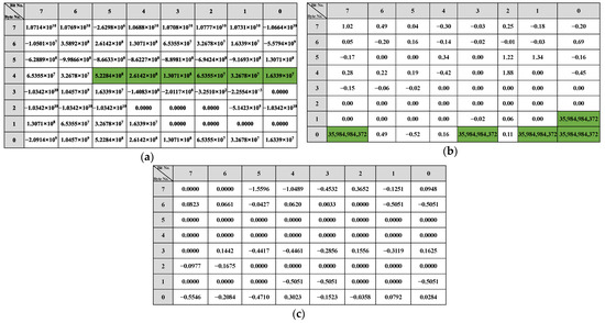 In statistics, the multiple linear regression model describes the linear relationship [41,42] between the scalar dependent variable and several explanatory variables defined as and the model function is shown in Equation (1), where is an unknown model parameter that can be estimated by giving sample set of and . The ordinary least squares method is the most commonly used method for parameter estimation. For a given sample set (see Equation (2)) and (see Equation (3)), the ordinary least squares method first creates a new matrix , as shown in Equation (4).